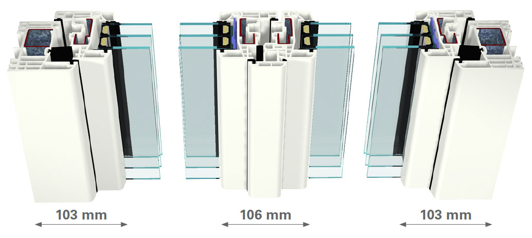 Ofrece la posibilidad de construir con perfiles estándar y refuerzos de acero estándar de 2 mm elementos de ventanas aptos para casas pasivas en color de acuerdo con la directiva ift WA-15/2.
