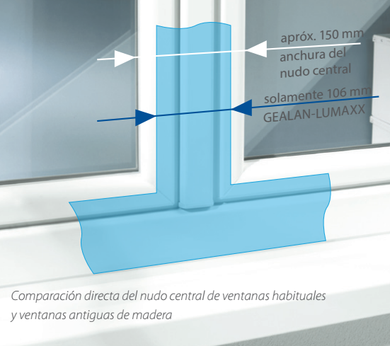 Durante el desarrollo de GEALAN-LUMAXX® se ha optimizado completamente la geometría de marco, en tanto que las alturas del perfil se han comprimido a un mínimo.