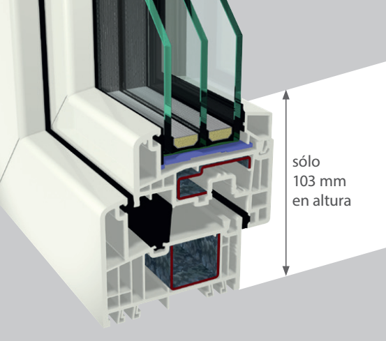 Las ventanas de PVC Gealan serie 9000 cuentan con aislamiento térmico e insonorización muy buenos gracias a la construcción de 6 cámaras y la gran profundidad constructiva de los marcos y las hojas.